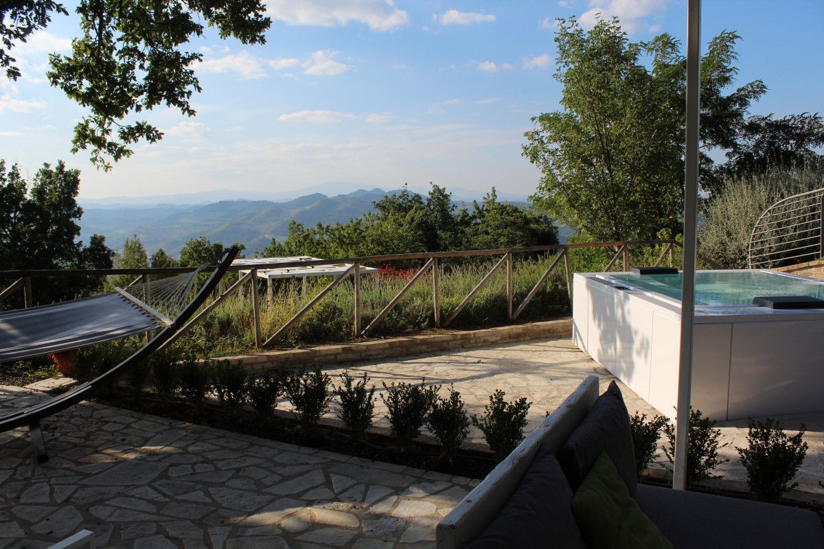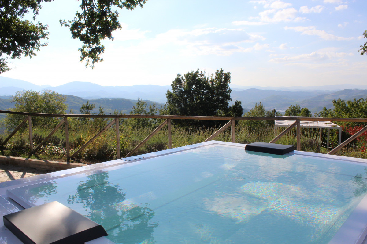 °sauna e vasca idromassaggio riscaldata , entrambe all'aperto affacciate ad una magnifica vista panoramica, solo per adulti verranno forniti accappatoi (servizi realizzati grazie al contributo psr 2014-2020 - psl gal montefeltro sviluppo bando misura 19.2.6.4b)